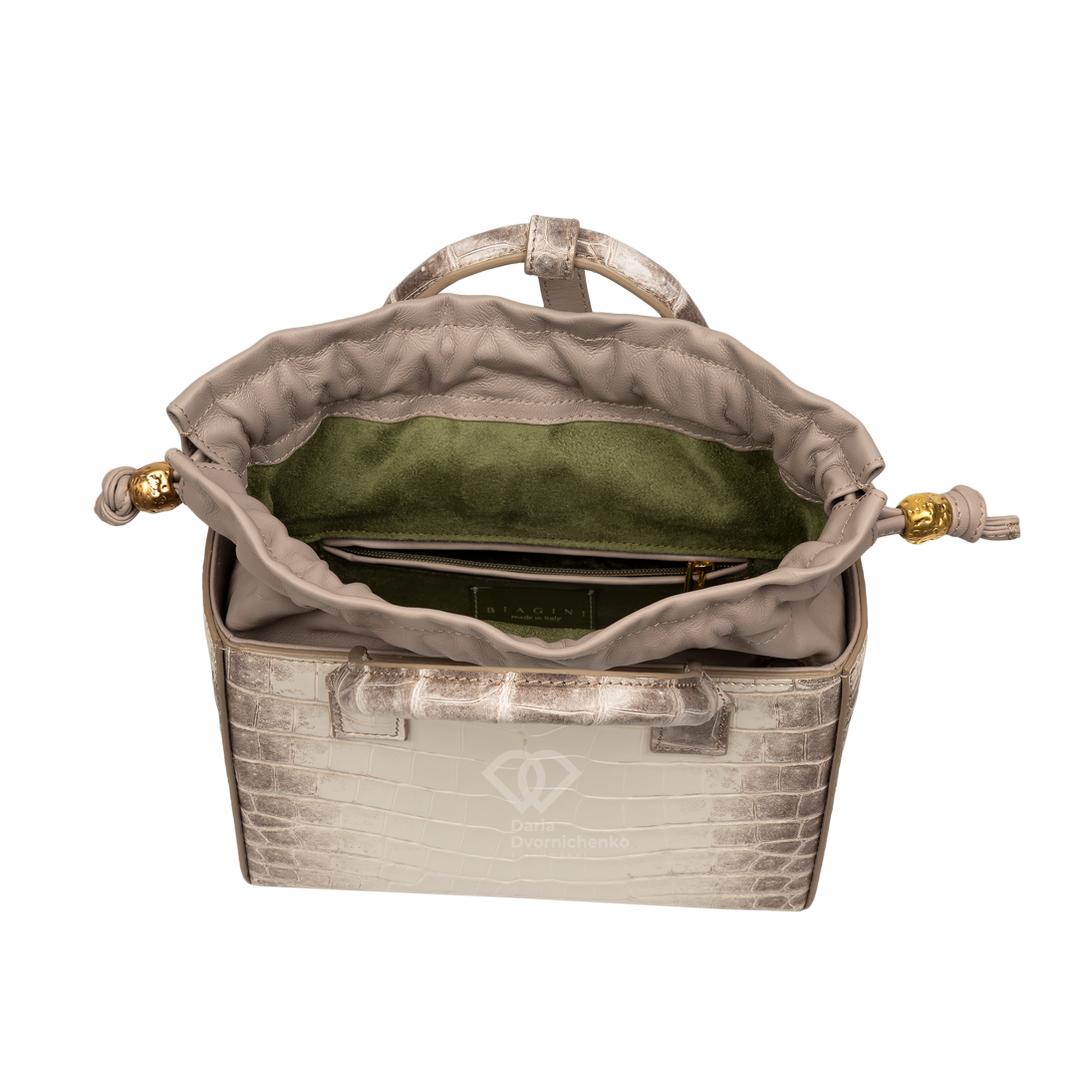 Сумочка выполнена из натуральной кожи крокодила и кожи наппа, подкладка тканевая